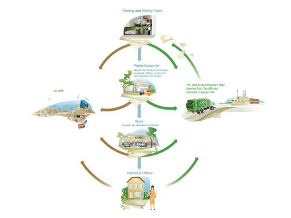 Illustrating the benefits of business processes. For Boise, we created an informative illustration explaining how fiber is diverted from landfills.