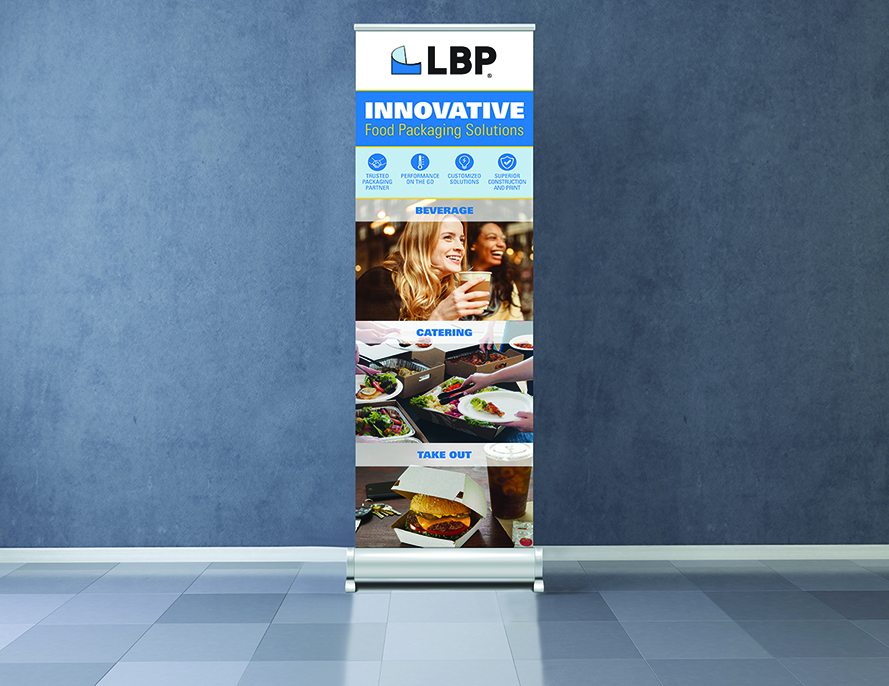 Showcasing a menu of options. When you have a variety of products and solutions to offer your customers, you want to ensure that your customers know all their options. To help make this a reality for their tradeshow exhibitions, LBP turned to the team at Evoke Idea Group. As a leading provider of food and beverage packaging options to some of the world’s biggest brands, LBP wanted to ensure that at every trade show event they attended, the three main types of packaging solutions they offer would be apparent even from afar. Evoke designed a display booth and pop-up banner, ensuring that no matter the size of the event or LBP’s presence at it, the company would be able to increase brand awareness and sales.