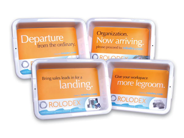 Helping sales take off. For the Rolodex brand, Evoke designed the first-ever ads for airport security bins—helping the brand get front-page exposure in USA Today and additional features in Forbes and Advertising Age.